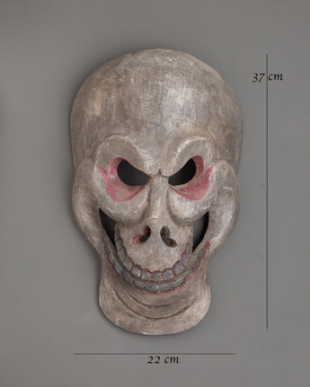 The wooden Citipati mask is commonly used in Buddhist ceremonies and spiritual rites to symbolize death and the fleeting nature of life. The expressive design, which includes red-painted eyes and exquisite carvings, depicts power, boldness, and transcendence, encouraging reflection and introspection. Whether displayed as a beautiful piece or utilized in a ceremony to develop a spiritual practice, this Citipati Mask holds ancient symbolism and sacred energy, making it a vital addition to any meditation area, altar, or Tibetan Buddhist collection.