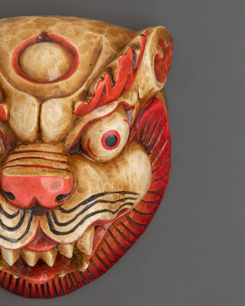 Handmade Snow Lion Tibetan Wall Art | Wooden Spiritual Decor