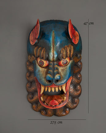 Snow Lion Wooden Wall Hanging | Tibetan Guardian Mask