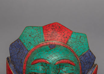 Our handcrafted moon and sun wooden mask, you can embrace the beauty of the celestial bodies. The moon is carefully crafted with intricate details and placed beneath the face of the sun, creating a stunning contrast. The mask is embellished with embedded gemstones, which adds a touch of elegance. Ideal for adding a piece to your home decor or for use in performances and ceremonies. This mask, helps you to bring a piece of the heavens into your home.