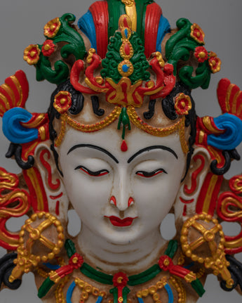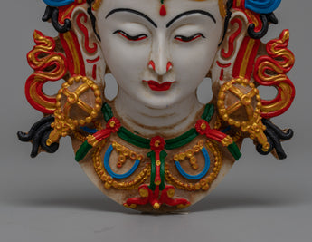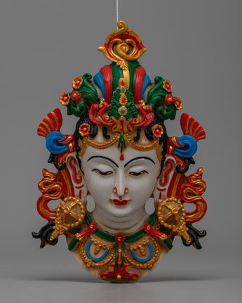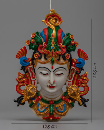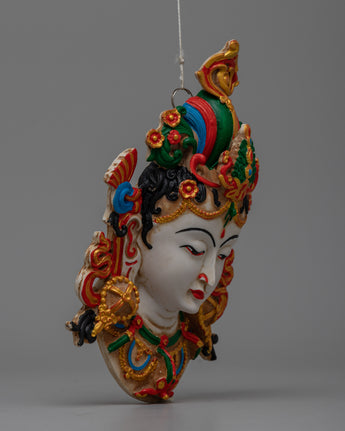 Green Tara Buddha Wall Hanging Face Mask | Compassionate Goddess Artwork