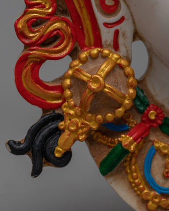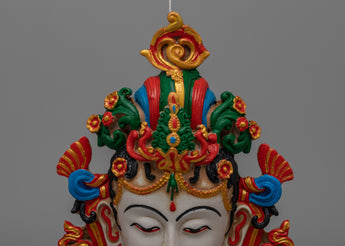 Every element of this mask, which was carefully crafted, perfectly captures the elegance and knowledge of both Green Tara and the Buddha. The ceramic material ensures longevity and durability by providing a strong foundation.