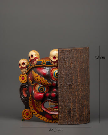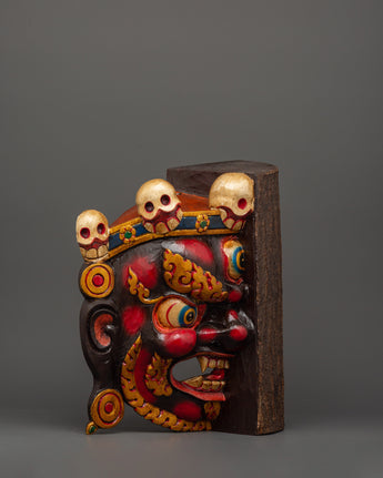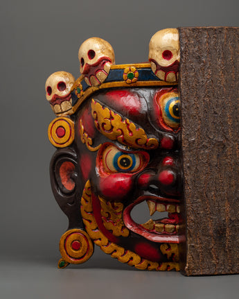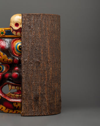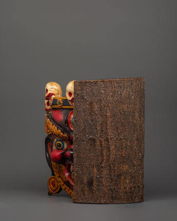 Tibetan Half Bhairav Wooden Mask | Fierce Guardian Deity for Home & Altar Decor