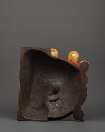 Tibetan Half Bhairav Wooden Mask | Hand-Carved Buddhist Altar Decor