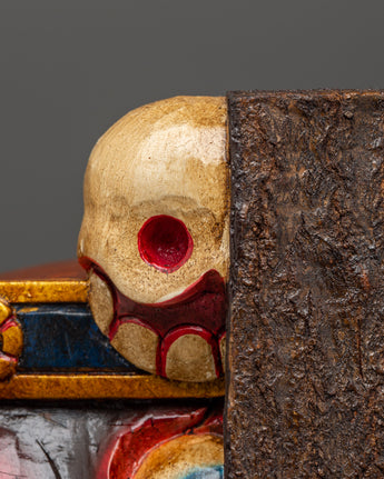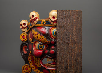 In Tibetan Buddhism, Bhairav, also known as Mahakala, is a fierce guardian deity who dispels harmful energies, ignorance, and obstacles. His piercing eyes, crown adorned with skulls, and fierce demeanor symbolize immense strength, knowledge, and transformation. This Tibetan wooden mask is believed to ward off harmful spirits and enhance inner strength. Whether displayed in homes, temples, or spiritual centers, this Half Bhairav Mask is a powerful reminder of bravery, protection, and divine intervention.