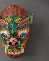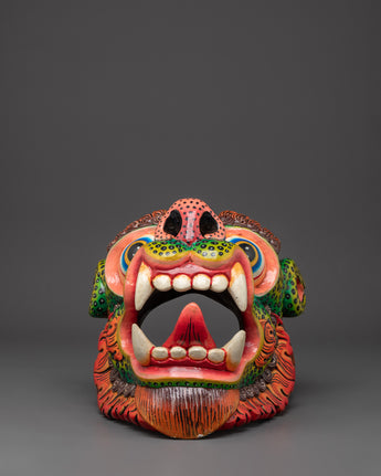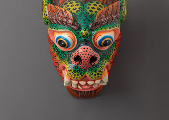 Whether it represents a guardian deity, protector spirit, or wrathful wisdom figure, such masks are traditionally used in temples and ritual spaces to ward off negativity, protect spiritual environments, and channel enlightened energy. This piece honors that legacy with authentic craftsmanship and bold, color-detailed design, ideal for spiritual practitioners or collectors of sacred art.