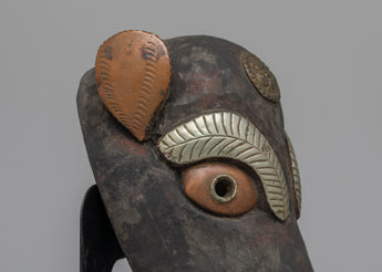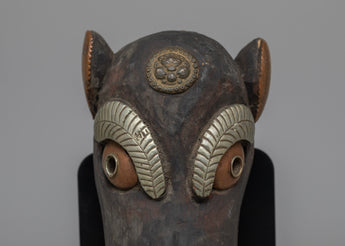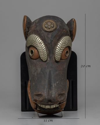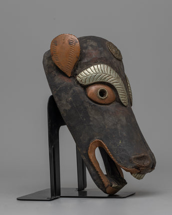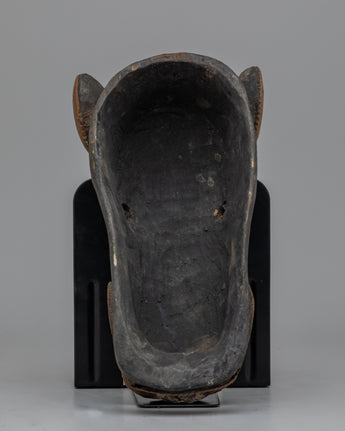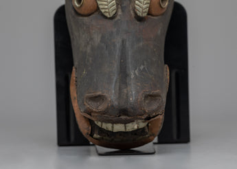 This vintage mask, with its handmade artistry, captures the humorous spirit of the pig in Nepalese culture. Our Vintage Pig Mask, whether displayed as a one-of-a-kind conversation piece or for its historical significance, provides a glimpse into Nepal's rich tapestry of legacy. Allow its presence to stir nostalgia and interest, inviting you to discover the Himalayan region's cultural variety and artistic expressions.