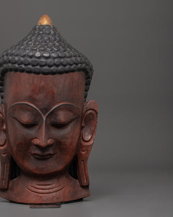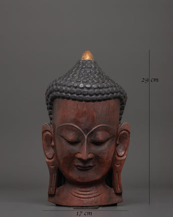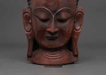 Buddha Head Wall Hanging Mask | Handcrafted Wooden Buddha Head Wall Art