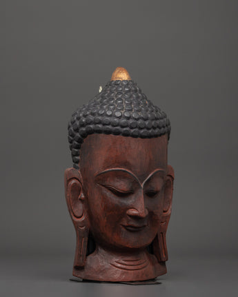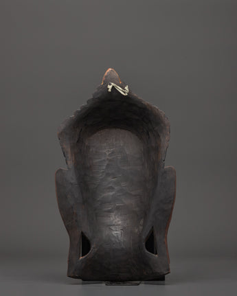 The Buddha Head Mask depicts the Buddha's wisdom and teachings on mindfulness and compassion. With its serene countenance, this mask represents inner serenity and enlightenment. The intricate wooden craftsmanship and brilliant colors combine to create a one-of-a-kind statement piece that depicts Buddha's great spiritual importance in Buddhist culture. This Buddha mask, used for meditation or as spiritual decor, will provide harmony and calm to your area.