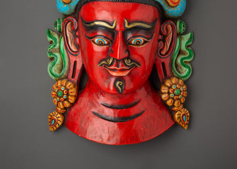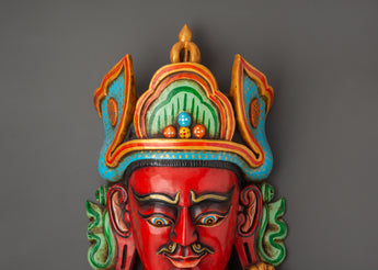 This wooden wall hanging is meticulously constructed by skilled Himalayan artisans and painted in vibrant colors using traditional methods. Guru Rinpoche is depicted reclining in a royal stance, radiating mastery and compassion, surrounded by symbolic elements reflecting his enlightened nature. This wall hanging of Guru Rinpoche is both an artistic marvel and a spiritually powerful symbol, making it suitable for practitioners, collectors, and those seeking protection and inner awakening.