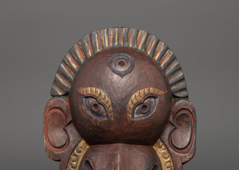 The Wooden Garuda Mask is a breathtaking piece of handcrafted art, carved from wood and meticulously painted with vibrant acrylic colors. This mask represents the Garuda, a mythical bird-like creature in Hindu and Buddhist traditions, symbolizing strength, protection, and divine power. The firm features, including the sharp eyes and beak and the decorative gold accents, convey a sense of boldness and divine authority. Garuda is often revered as a protector, offering spiritual strength and guidance. This mask is perfect for anyone drawn to ancient symbolism and the majestic aura of this legendary creature.