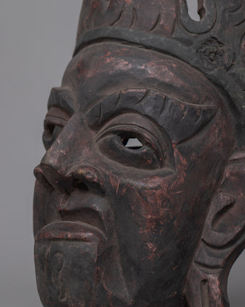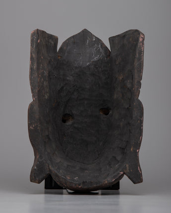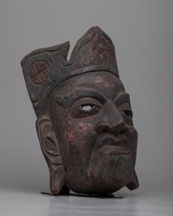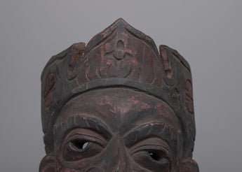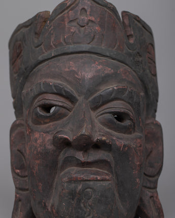 A treasured addition to any collection or decor ensemble, the Vintage Wooden Guru Rinpoche Mask is a sign of spiritual dedication and cultural heritage that serves as a timeless reminder of the enormous impact of Tibetan Buddhism on Himalayan art and culture.