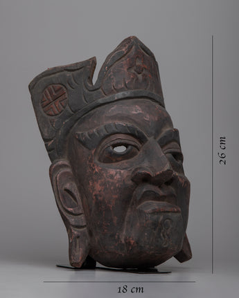 Crafted from wood with careful attention to detail, this mask is a beautiful piece of table decor that exudes heavenly presence and knowledge. Its vintage appeal lends depth and character to interior settings, instilling a sense of respect for Guru Rinpoche's teachings and heritage.