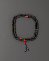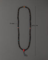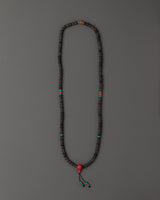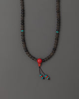 108 Bead Japa Mala Necklace with Black Stone Beads | Turquoise and Coral Accents