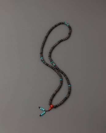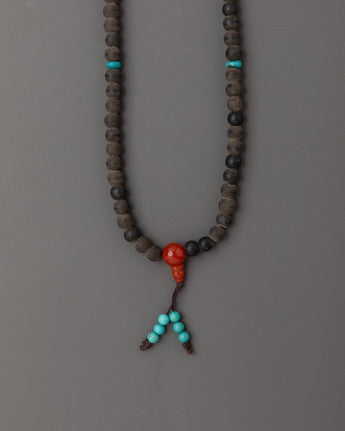 Handmade Spiritual Mala Necklace | Black Stone, Coral for Mindfulness