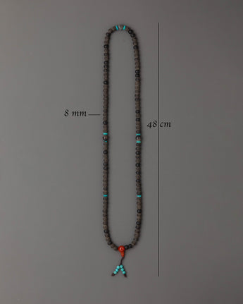 The dark stone beads provide grounding and emotional clarity, whereas the coral promotes vitality and heart energy. Turquoise stones are associated with healing, truth, and protection in many cultures. This mala, weighing only 0.084 kg, is suitable for meditation, strolling, chanting, or as a gift for someone on a spiritual journey. Whether you use it in a personal ritual or wear it as a symbol, it serves as a daily reminder of inner peace and holy connection.
