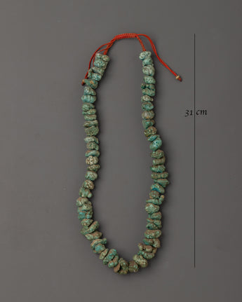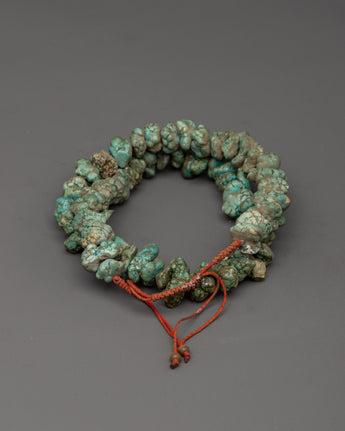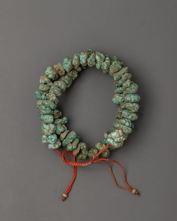 Each turquoise bead is carefully chosen and hand-strung with intention, demonstrating traditional Tibetan craftsmanship. Turquoise, known for its soothing blue tones and sacred symbolism, has long been associated with truth, communication, and inner peace. This semi-precious mala can be used for prayer, meditation, or as a powerful spiritual accessory.
