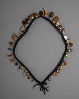 Presenting our exquisite Tibetan Shaman Necklace, a symbol of spiritual reverence and handmade skill. This necklace, which is handcrafted with great care, is a balanced combination of spiritual symbolism and materials sourced sustainably. Coral, turquoise, crystal, fish shells, tortoises, copper coins, brass coins, animal teeth, and minor components are just a few elements that adorn this necklace. Each element adds to its exquisite beauty and spiritual importance.