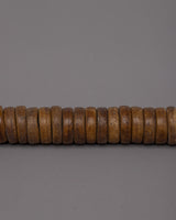 Showing the Traditional Buddhist Mala Beads, a stunningly handmade item composed of wisely taken bone that embodies the profound spiritual meaning of practicing Buddhism. This mala is a perfect meditation, prayer, and introspection tool since each bead is meticulously polished to produce a smooth and pleasant feeling. These beads' deep symbolic meaning derives from the ethically sourced bone, which constantly reminds their users of the transience of life and the value of leading compassionate and thoughtful lives.