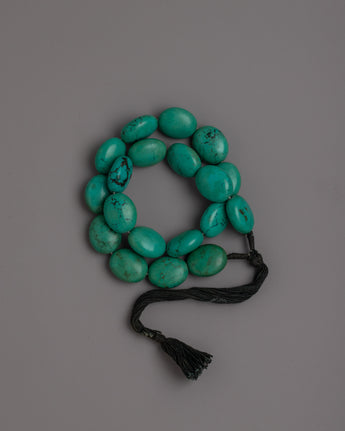 A magnificent piece of jewelry, the Turquoise Mala Bracelet is carefully handmade by hand from vivid turquoise stones. Each 22mm bead is hand-picked and expertly manufactured to provide a harmonious and eye-catching pattern. This bracelet is a unique accessory that radiates elegance and tranquillity due to the natural beauty of the turquoise stones, which have soothing blue-green hues and unusual patterns.