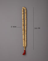Tibetan mala beads are sacred and spiritual accessories used in meditation and prayer practices. These bead strings typically consist of 108 beads, though shorter variations exist. Each bead is carefully handcrafted from materials like wood, bone, or gemstones, and they are often adorned with a guru bead and a decorative tassel. Mala beads are a tactile aid for counting mantra repetitions or breaths during meditation, fostering mindfulness and concentration. They hold deep significance in Tibetan and Buddhist traditions, helping practitioners connect with their inner spirituality while embodying a sense of peace and mindfulness in daily life.