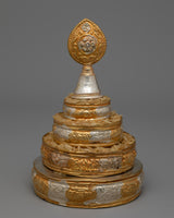 Introducing our stunning Buddhist Mandala Offerings Sets, which represent a perfect blend of artistry and tradition. These sets include a solid copper body and are electroplated in gold and silver to provide them with a shining, hallowed appearance. They measure 17.5 cm high and 10.5 cm on the base and weigh 0.112 kg. These offering sets have been meticulously created to enhance your religious activities.