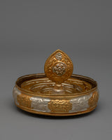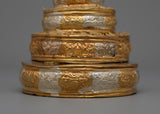 Buddhist Mandala Offering Sets | Intricate Copper Design with Gold and Silver Plating