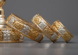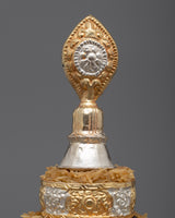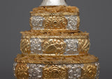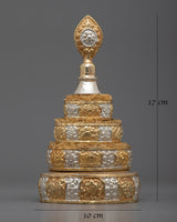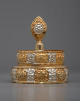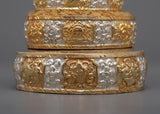 Presenting the Copper Mandala Offering, an exquisitely created item intended to enhance spiritual rituals. This 17cm gift is forged on a copper body and plated in 24k gold and silver. In addition to adding to its visual attractiveness, its dual plating represents the ritual's deep spiritual importance for the mandala gift.