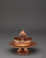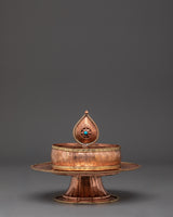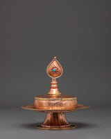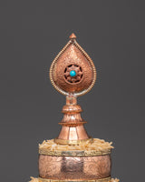 The design features a beautifully crafted mandala, representing oneness, wholeness, and spiritual harmony. This copper Mandala is meticulously created by expert artisans in Nepal, ensuring that each one is unique. The use of artificial turquoise stones increases the statue's energy, making it an effective tool for those who meditate or do yoga. Its rich copper and bronze combination lends it a charm, ensuring that it blends smoothly into your sacred place. Weighing only 0.48kg, it is important enough to make an entrance without overpowering your space.