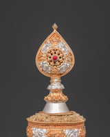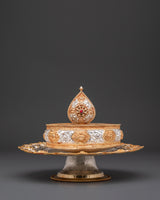 Handcrafted Tibetan Mandala Offering Set | Altar Piece with Gem Finial