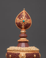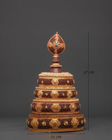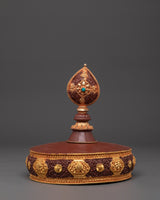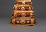 This Handmade Buddhist Altar Mandala Set is a sacred and distinctive addition to enhance your spiritual practice. Made from copper and elegantly gold-plated, it stands 37 cm tall and 21 cm wide, serving as a striking centerpiece for any meditation area or altar. Its intricate design embodies the deep symbolism and spiritual energy of Buddhist tradition, making it an ideal piece for your home or sacred space.