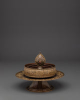 Himalayan Mandala Offering Set | Tibetan Copper Ritual Piece with Coral Inlay