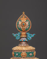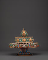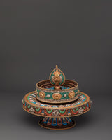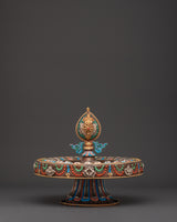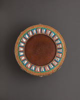 The mandala’s design is rich in spiritual symbolism, making it an ideal addition to any altar, meditation room, or sacred space. The combination of oxidized copper and gold gilding represents the balance between grounding energy and divine wisdom, while the colorful design invites positivity and transformation. Whether used in daily meditation or as a decorative centerpiece, this mandala brings both beauty and spiritual meaning to your home.