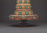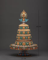 This Multi-Color Mandala (45cm x 27cm, 2.40kg) is a beautifully crafted piece of sacred art, designed to bring spiritual energy and harmony to your space. Made from oxidized copper with gold gilding, the mandala’s intricate patterns are accentuated by vibrant acrylic colors, creating a visually stunning and spiritually powerful piece. The central mandala, with a width of 16.5cm, serves as the focal point of this piece, representing unity, wholeness, and the cyclical nature of life.
