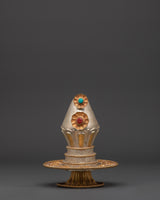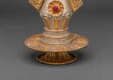 This beautifully crafted Ritual Offering Torma is an essential addition to any altar or meditation space, infusing your environment with a profound spiritual presence. Expertly made from copper and enhanced with both gold and silver plating, it radiates elegance and sacredness. The carefully chosen gemstones not only elevate their aesthetic appeal but also deepen their spiritual significance, symbolizing purity and balance. Its exquisite design reflects traditional craftsmanship, making it a timeless piece for Buddhist practitioners. Whether incorporated into meditation sessions or ritual offerings, this Torma embodies devotion and spiritual harmony, helping you cultivate inner peace and connection with the divine.