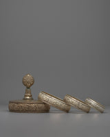 The intricate designs of every component in the Mandala Offering Set stand for harmony, balance, and the interdependence of all living things. The intricate workmanship encourages practitioners to immerse themselves in their spiritual activities, reflecting the talent and commitment that go into making these sacred objects. This set is a potent reminder of the fundamentals of Buddhism and the value of mindfulness, whether it is utilized for ceremonial offerings or as ornamental accents in your house. Accept the Buddhist Mandala Offering Set's beauty and meaning to enhance your spiritual development and foster calm surroundings.