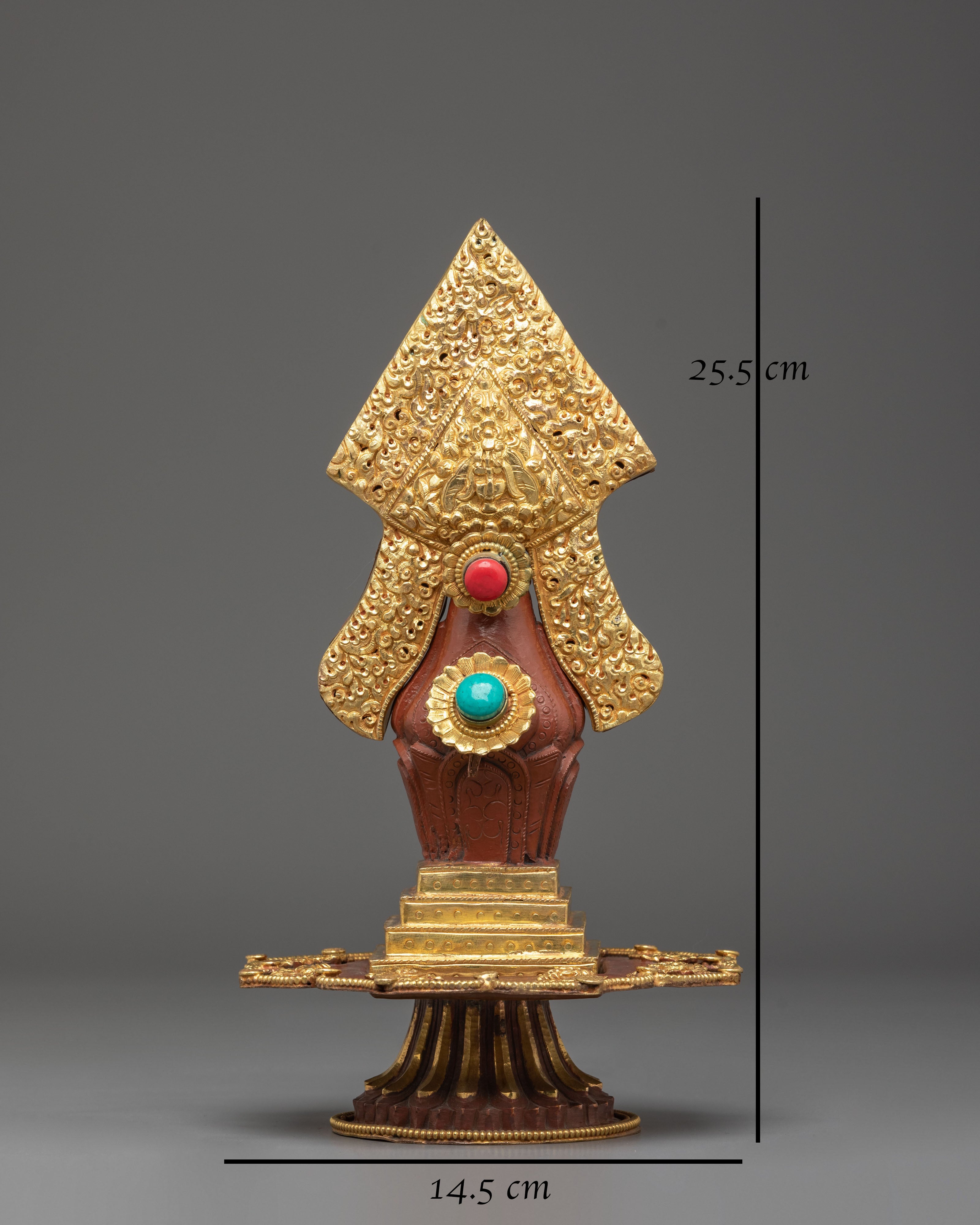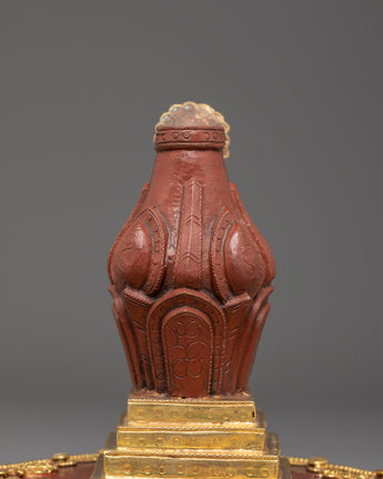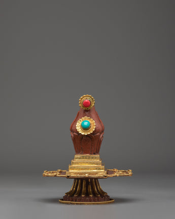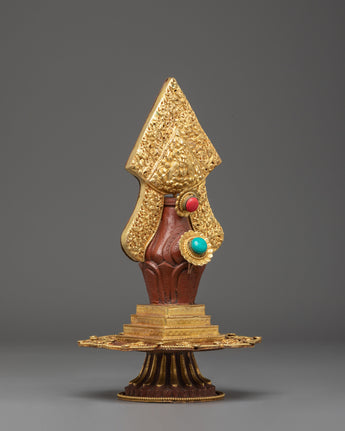 The Vajrasattva Hundred-Deity Ritual Torma is a masterfully crafted Himalayan offering sculpture designed for Vajrayana practitioners engaged in the Hundred-Deity purification and Shitro rituals. Standing 25.5cm tall and 14.5cm wide, weighing 0.78kg, this torma features a copper body with gold plating, reflecting the sacred luminosity associated with deities of purification. Its elegant form embodies the traditional torma shape, symbolizing the transformation of ordinary perception into spiritual wisdom.