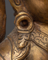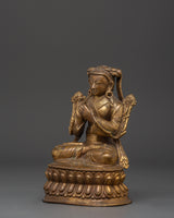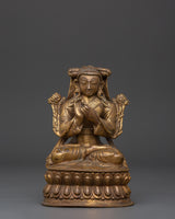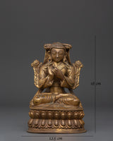 This Gold Plated Buddhist Master Statue (18cm x 12.5cm, 1.54kg) represents a revered Buddhist master, exquisitely crafted from copper with a slight gold-plated finish. This elegant statue captures the serene and enlightened essence of a Buddhist master, making it an ideal addition to your altar, meditation space, or spiritual home decor.
