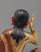 The Handcrafted Milarepa Buddhist Statue embodies spiritual enlightenment and devotion. This statue, expertly created from a copper body, radiates grace and tranquility. Its surface is lavishly embellished with 24K gold plating, which symbolizes the sacred and divine qualities of Milarepa, one of Tibet's most revered yogis and poets.