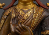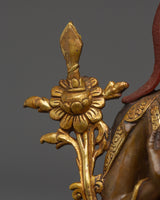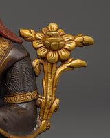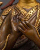 This handcrafted Tsongkhapa statue is an impressive depiction of one of Tibetan Buddhism's most admired figures. This statue, expertly carved from oxidized copper with stunning gold-plated accents, represents Tsongkhapa in a tranquil contemplative pose, symbolizing wisdom, compassion, and spiritual understanding. The design incorporates exquisite Tibetan themes, such as ornate robes and a wonderfully sculpted lotus base. This creation is not just a work of art, but it also acts as a spiritual tool for individuals seeking calm, enlightenment, and a stronger connection to their practice.