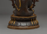 Crafted with care, this Tsongkhapa statue has a gorgeous oxidized copper finish that gives it an antique appearance, while the gold plating increases its spiritual energy and visual appeal. This handcrafted statue is ideal for meditation practitioners, collectors, and anybody who appreciates Tibetan art. It will make a meaningful addition to your spiritual area. Invite Tsongkhapa's teachings into your house and deepen your practice with this engaging work.