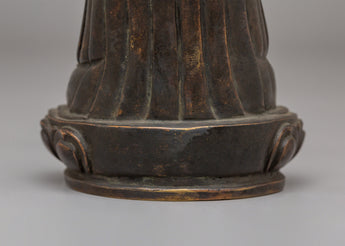 This Handmade Marpha Buddha Statue is an intricately crafted representation of the Buddha, crafted from oxidized copper to give it an antique, rustic appearance. Standing at 12.5cm tall, this statue reflects the serenity and wisdom associated with Buddha’s teachings. The statue is depicted seated on a lotus base, symbolizing purity and spiritual growth. The oxidized copper finish adds a timeless and sacred quality, making this piece not just a decor item but also a meaningful symbol of peace and enlightenment.
