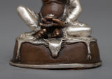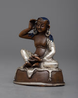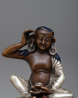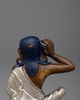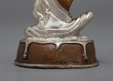 Discover the Jetsun Milarepa Statue, which is beautifully made of oxidized copper and plated in silver. The Tibetan yogi is depicted in this 6.5 cm tall sculpture in a calm, contemplative position that reflects the depth of his spirituality. A stunning addition to any environment, the oxidized copper beneath the dazzling silver layer highlights the delicate craftsmanship.