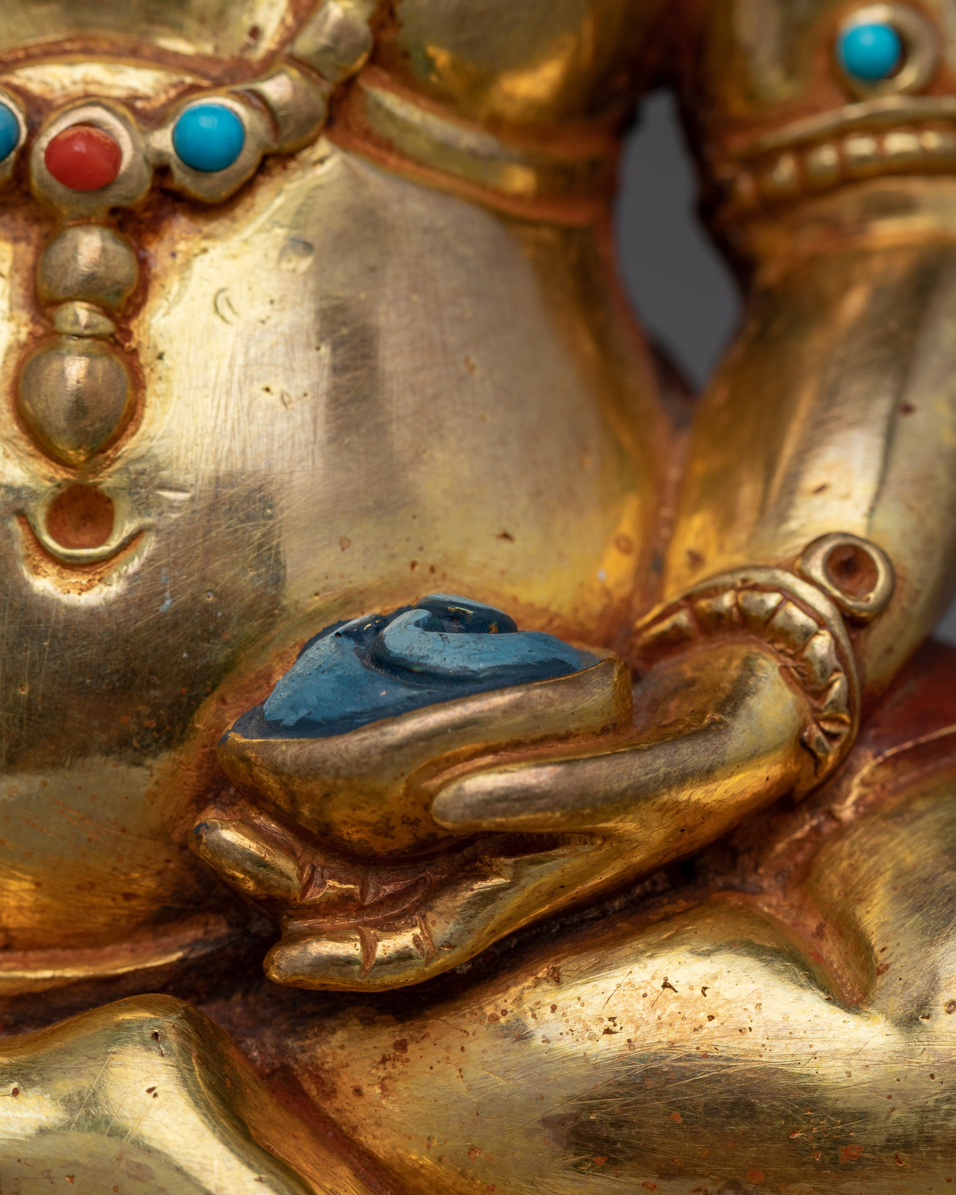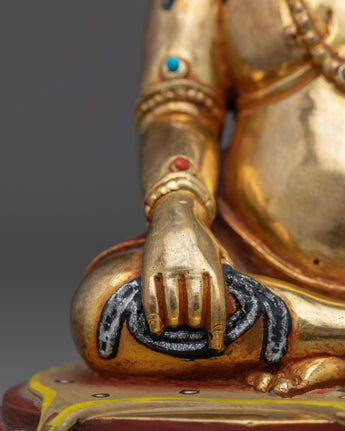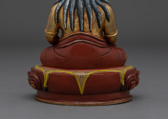 This Handmade Thang Tong Gyalpo Statue pays homage to the revered Tibetan yogi, engineer, and spiritual master known as "The Iron Bridge Builder." Crafted from a copper body and adorned with 24K gold gilding and detailed gold and acrylic paintings, this statue captures the wisdom and inventive spirit of Thang Tong Gyalpo. A legendary figure in Tibetan history, he is renowned for constructing iron suspension bridges, founding Tibetan opera, and exemplifying compassionate action. Handcrafted by skilled Nepali artisans, this piece is ideal for spiritual spaces, study areas, or as an inspiring symbol of innovation and devotion.