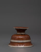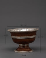 Enhance your spiritual practices with this handcrafted Sacred Tibetan Offering Bowl Set, crafted from oxidized copper and featuring a brass lining and silver plating. These magnificent ritual bowls are commonly used in Tibetan Buddhist ceremonies for prayers, meditation, and blessings. Each bowl measures 7.5 cm in height, with a base diameter of 7 cm and a top diameter of 10.5 cm, providing ample room for your ceremonial offerings. With an interior depth of 5 cm, these bowls are ideal for holding water, grains, or symbolic gifts, making them a valuable addition to any altar or meditation space.