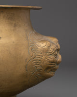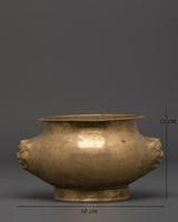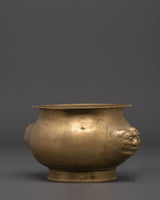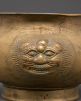 This exquisitely crafted bronze offering vessel bowl is an ideal addition to your spiritual or meditation area. Measuring 11 cm in height and 18 cm in width, it showcases a striking lion head design that brings both elegance and cultural depth. Traditionally used in Tibetan Buddhism, this bowl serves as a ritual offering vessel for prayers and blessings. The detailed lion faces symbolize strength and protection, enriching the spiritual energy of your sacred space. Crafted with care and precision, this offering bowl is made from bronze, which will age beautifully over time.