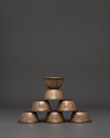 Oxidized Copper Offering Water Bowls for Buddhist Rituals, Meditation, and Sacred Dharma Practices