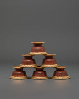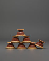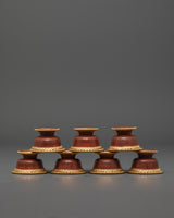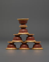 This Sacred Bowls for Offerings (4cm x 7cm, 0.076kg each, total weight 0.51kg) set is designed for use in Buddhist rituals and spiritual practices, ideal for holding offerings during prayers, ceremonies, or meditations. With a 4cm height and 7cm diameter, these bowls are the perfect size for placing on your Buddhist altar to symbolize generosity and spiritual nourishment.