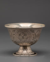 Tibetan Ritual Water Bowl Set | Silver-Plated Copper Offering Bowls