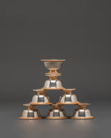 Tibetan Seven Offering Bowl Set | Copper Ritual Bowls with Silver & Gold Plating